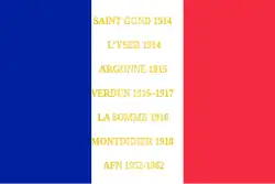 - ↑ Décision no 12350/SGA/DPMA/SHD/DAT du 14 septembre 2007 relative aux inscriptions de noms de batailles sur les drapeaux et étendards des corps de troupe de l'armée de terre, du service de santé des armées et du service des essences des armées, Bulletin officiel des armées, no 27, 9 novembre 2007