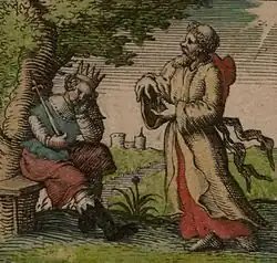 Le prophète Mahomet recevant la soumission des Banu Nadir. Manuscrit du Jami al-tawarikh, v. 1314-15.