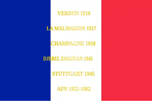 Verdun 1916 La Malmaison 1917 Champagne 1918 Djebel Zaghouan 1943 Stuttgart 1945 AFN 1952-1962 |