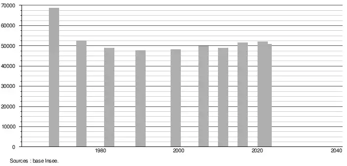 - ↑ Population selon le sexe et l'âge quinquennal de 1968 à 2013 - Recensements harmonisés - Séries départementales et communales