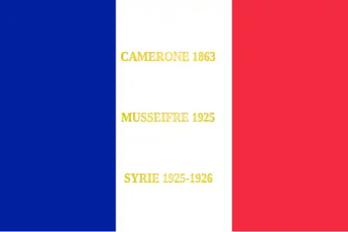 - ↑ Décision n°12350/SGA/DPMA/SHD/DAT du 14 septembre 2007 relative aux inscriptions de noms de batailles sur les drapeaux et étendards des corps de troupe de l'armée de terre, du service de santé des armées et du service des essences des armées, Bulletin officiel des armées, n°27, 9 novembre 2007