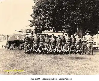- d’assurer le plastron pour les escadrons en simulant l’ennemi. Le peloton, organisé en trois patrouilles de deux véhicules + 1 camion de transport, dispose pour ce faire, outre son équipement de vision nocturne, d’une mitrailleuse et d’un lance-roquette anti-chars par patrouille.