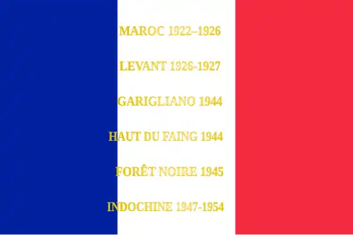 Maroc 1922–1926 Levant 1926-1927 Garigliano 1944 Haut du Faing 1944 Forêt-Noire 1945 Indochine 1947-1954 |