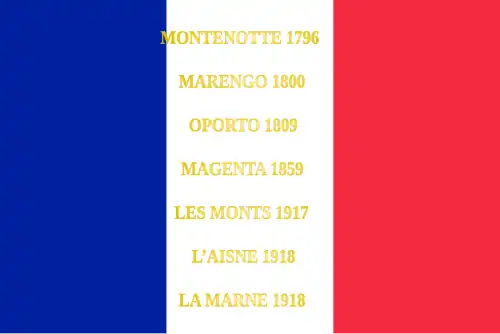 - ↑ Décision no 12350/SGA/DPMA/SHD/DAT du 14 septembre 2007 relative aux inscriptions de noms de batailles sur les drapeaux et étendards des corps de troupe de l'armée de terre, du service de santé des armées et du service des essences des armées, Bulletin officiel des armées, no 27, 9 novembre 2007