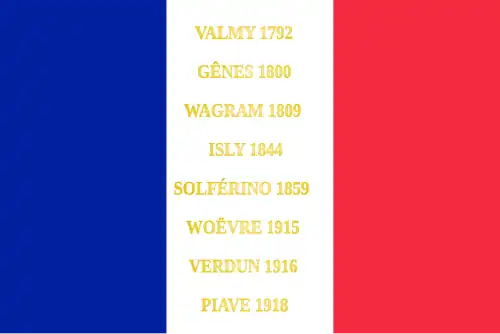 Il porte, cousues en lettres d'or dans ses plis, les inscriptions suivantes[3] :
