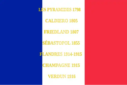 Les Pyramides 1798 Caldiero 1805 Friedland 1807 Sébastopol 1855 Flandre 1914-1915 Champagne 1915 Verdun 1916 |