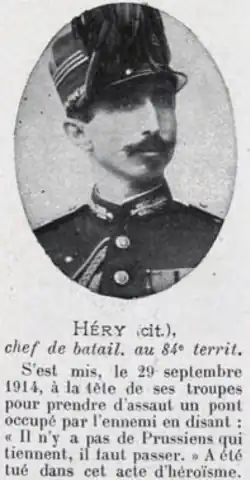 Au , c'est le lieutenant colonel Louis Charpy qui commandait le 84e régiment d'infanterie territoriale du 1er Corps d'Armée. Ce jour, il a cité à l'ordre du régiment (citation numéro 18) un soldat pour acte de bravoure. Voici, une partie du texte : Soldat Duribreu Maurice, de la 12e Cie. Très brave au feu. A défendu énergiquement un boyau par où l'ennemi cherchait à avancer. A mis plusieurs allemands hors de combat et s'est maintenu toute la journée sur la position. Le document original a été retrouvé dans le livret de famille du dénommé soldat.