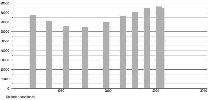 - ↑ Population selon le sexe et l'âge quinquennal de 1968 à 2013 - Recensements harmonisés - Séries départementales et communales