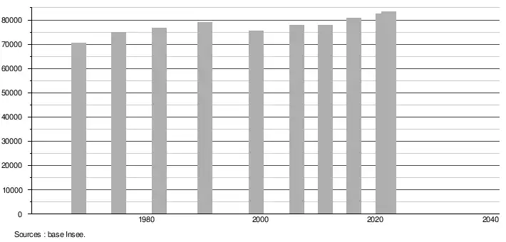 - ↑ Population selon le sexe et l'âge quinquennal de 1968 à 2013 - Recensements harmonisés - Séries départementales et communales