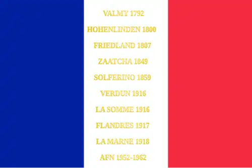Valmy 1792 Hohenlinden 1800 Friedland 1807 Zaatcha 1849 Solférino 1859 Verdun 1916 La Somme 1916 Flandres 1917 La Marne 1918 AFN 1952-1962 |