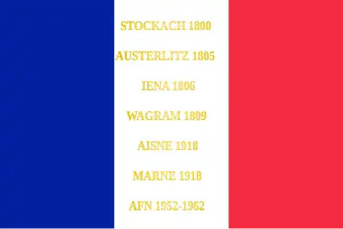 Stokach 1800 Austerlitz 1805 Iéna 1806 Wagram 1809 L'Aisne 1918 La Marne 1918 AFN 1952-1962 |