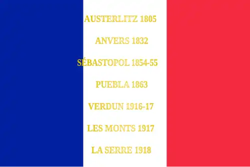 - ↑ Décision no 12350/SGA/DPMA/SHD/DAT du 14 septembre 2007 relative aux inscriptions de noms de batailles sur les drapeaux et étendards des corps de troupe de l'armée de terre, du service de santé des armées et du service des essences des armées, Bulletin officiel des armées, no 27, 9 novembre 2007