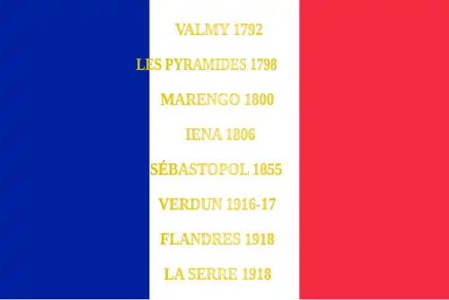 Valmy 1792 Pyramides 1798 Marengo 1800 Iéna 1806 Sébastopol 1855 Verdun 1916-1917 Flandres 1918 La Serre 1918 |