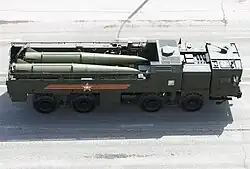 Le 9K720 Iskander (code OTAN : SS-26 Stone) est un système russe de missile balistique à courte portée ou moyenne portée[2] de nouvelle génération. Il peut également être utilisé comme missile balistique tactique nucléaire selon les besoins du champ de bataille.