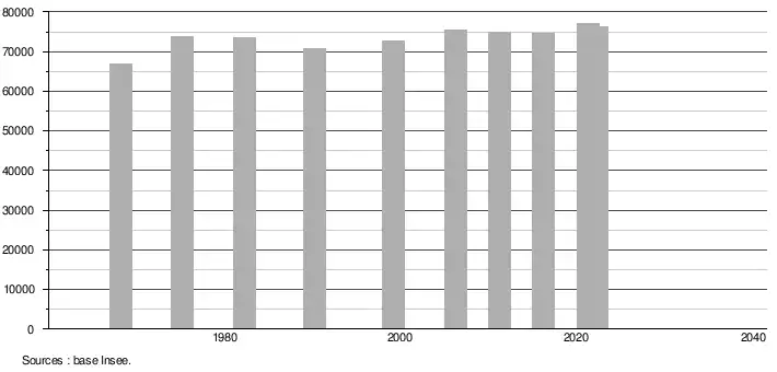 - ↑ Population selon le sexe et l'âge quinquennal de 1968 à 2013 - Recensements harmonisés - Séries départementales et communales