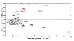 Dans le cadre de l'analyse des composés phénoliques et des activités antioxydantes des fruits, la méthode statistique CCSWA peut être utilisée pour analyser les relations entre plusieurs variables mesurées (comme la teneur en composés phénoliques, la teneur en flavonoïdes, la capacité antioxydante totale, etc.) et pour établir des classifications ou des groupes de fruits ayant des propriétés similaires (Qannari et al[21], 2000). C’est la méthode utilisée par Ana Paula Stafussa et al[22] pour analyser les composés bioactifs et l’activité antioxydante de 44 fruits du Brésil, originaires ou importés, comme l’açai (Euterpe oleracea), l’acérola (Malpighia emarginata), la mûre (Rubus fruticosus), le framboisier (Rubus idaeus), le kiwi (Actinidia deliciosa), le panã (Annona crassiflora (en)) etc.