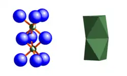 Les cations d'aluminium (Al3+) et de magnésium (Mg2+) sont entourés de deux groupes d'oxyde (O2-) et quatre groupes hydroxyde (OH-) octaédriques. Ces octaèdres sont reliés chacun sur deux arêtes communes à des chaînes en zigzag qui s'étendent dans la direction de l'axe c cristallographique.