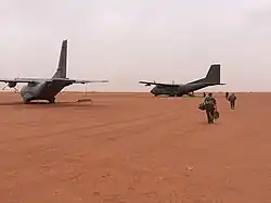 C-160 Transall de l'armée de l'air française sur la piste de Madama, 1er janvier 2015 | ||||||||||