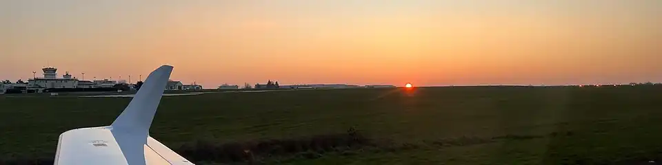 Vue de l'aérodrome au coucher du soleil depuis le taxiway.