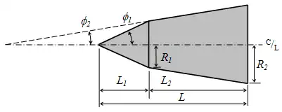 Une pointe biconique est simplement un cône de longueur L1 tronqué par un autre cône de longueur L2.