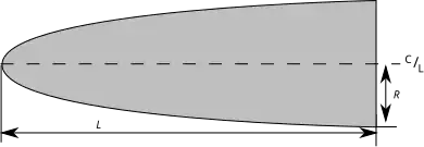 La longueur de la pointe avant, L, doit être inférieure ou égale au rayon de l'ogive ρ. S'ils sont égaux, la forme est un hémisphère.