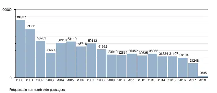 En 2000, 85 000 passagers ont transité par la plateforme.
