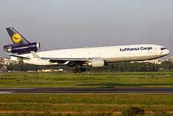 McDonnell Douglas MD-11F de Lufthansa Cargo à l'atterrissage.