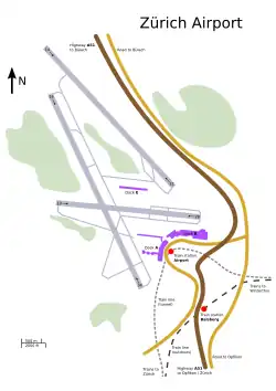 Vue générale de l'aéroport de Zurich. | ||||||||||||||||