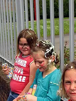Désigné également « bombe serpentin » ou « fil fou », cet article de jeu propulse un mince jet de pâte colorée qui adhère aux vêtements et aux cheveux mais peut être enlevé sans grande difficulté tant qu'il n'a pas séché. Cette pâte souple, non-allergisante, est parfois récupérée par les enfants pour en faire de petites boules qu'ils jettent vers de nouvelles « cibles ».