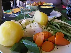 | Ingrédients | Morue, aïoli, légumes (carotte, pommes de terre, haricot vert, artichaut, oignon...) |