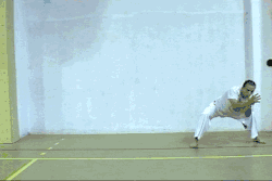 - Garder les pieds en "flex" (pé de capoeira), c'est-à-dire en tirant la pointe des pieds vers soi.