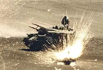 Un ZSU-23-4 pris pour cible, lors d'un tir d'exercice d'AGM-154A.