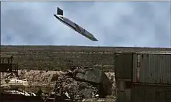- ↑ (en-US) Aaron Mehta, Tara Copp, « Coalition launched 105 weapons against Syria, with none intercepted, DoD says », Military Times, (lire en ligne, consulté le ).