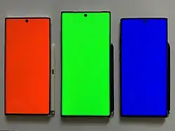 | HD Super AMOLED | 1280×720 | 5.6 (5.55) | 267 | RGB S-Stripe | Samsung Galaxy Note II |