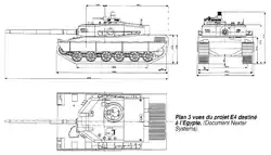 - AMX E4 : concept dérivé de l'AMX-40, étudié durant le premier trimestre 1986 pour les besoins du marché Égyptien. Le châssis aurait été allongé et élargi pour accueillir un GMP de 1 200 ch-1 300 ch, un GAP ainsi que des chenilles de 635 mm au standard OTAN. Une mitrailleuse coaxiale de 7,62 mm aurait remplacé le canon de 20 mm. La protection aurait été revue à la hausse avec un blindage sur l'arc frontal capable de résister à des obus-flèches en acier de 115 mm et des missiles antichars 9M17 Fleyta. Toutes ces améliorations auraient fait monter le poids du char à 50 t.