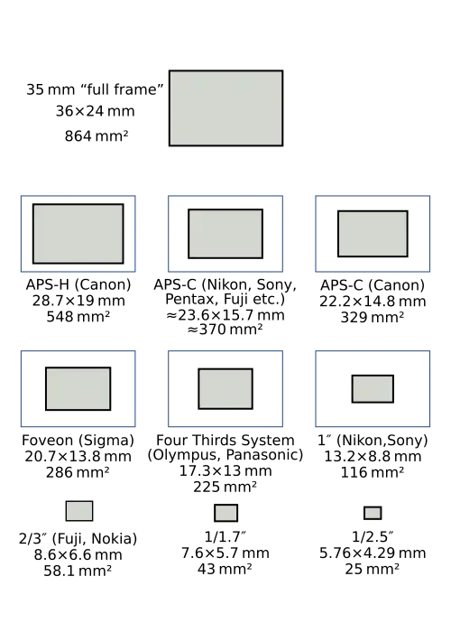 - ↑ Sensor Sizes, DPreview.com