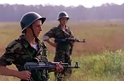 A travers le pillage des entrepôts des Forces armées albanaises au début des années 1990 et le trafic d'armes, cette « AKM albanaise » a servi lors des :
