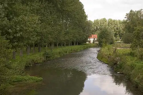 Ce petit fleuve sert de frontière entre les départements du Nord et du Pas-de-Calais sur une partie de son cours. Ses principaux affluents sont le Bléquin, le Thiembronne.