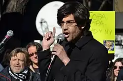 - ↑ (en-US) Will Wrigley, « Darrell Issa Praises Aaron Swartz, Internet Freedom At Memorial », Huffington Post, (lire en ligne, consulté le ).