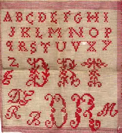 Jusqu'aux années 1950, l'abécédaire est un témoin de la dextérité de la jeune femme. Il est réalisé depuis le XVIIe siècle, souvent en fil de coton rouge (symbole de vie) sur toile blanche, ou en couleurs. À l'origine, l'abécédaire servait de référence de motifs de point de croix, à laquelle la femme pourrait par la suite se référer pour ses travaux de broderie. Avec l'arrivée de patrons imprimés, il devint un objet décoratif, souvent formant partie du trousseau et mis en évidence dans la pièce principale de l'habitation. Dans les foyers à petit revenu, il pouvait représenter un élément important du décor.
