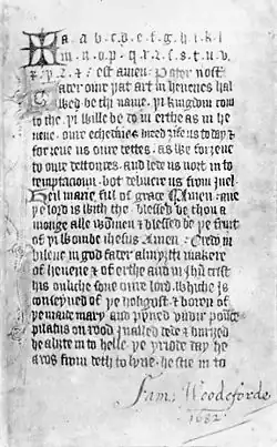 Déjà longtemps avant l'invention de l'imprimerie, des manuscrits étaient répandus dans les écoles pour servir de manuels de lecture et de prière. On suppose que les catéchismes pour les enfants existaient dès le VIIIe ou IXe siècle. Les abécédaires en bois pour l'enseignement sont évoqués dans un manuscrit anglais du XIVe siècle. Dès la fin du XIVe siècle, des manuscrits de caractère pédagogique nous ont été transmis, qui commencent par une croix et un alphabet, et contiennent diverses prières. D'environ 1400 nous est parvenue une copie d'une œuvre de Sacrobosco, montrant un abécédaire avec des chiffres arabes.