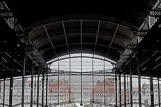 La grande halle métallique abrite le marché au bestiaux, et couvre une superficie d'un hectare. La charpente de la toiture est soutenue par une centaine de colonnes de fonte[9]. Ce bâtiment est classé le 8 août 1988[9], en même temps que les deux pavillons d'entrée du complexe[6].