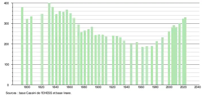 - ↑ Fiches Insee - Populations de référence de la commune pour les années 2006, 2007, 2008, 2009, 2010, 2011, 2012, 2013, 2014, 2015, 2016, 2017, 2018, 2019, 2020, 2021 et 2022.