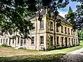 La porche d’entrée de 1764 donne sur un chemin entre sept anciens platanes et le bâtiment de 1762/1777 avec les écuries et les grainiers (fortement modifié dans les années 1970).