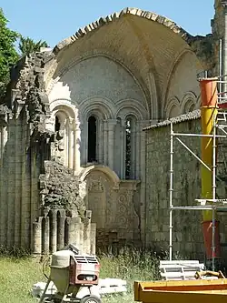 La guerre de Cent Ans marque le début du déclin de l'abbaye. Les bâtiments sont considérés comme ruinés au milieu du XIVe siècle. Il n'y a plus que cinq religieux en 1427. Vers 1450, les voûtes occidentales et de la nef et le clocher s'effondrent. Autour de 1500, l'abbé Achard fait reconstruire le logis abbatial. Les restaurations de l'église commencent au début du XVIe siècle sous l'abbé Jean Calluau. La reconstruction ne fut que partielle et ne concerna que six des travées de la nef[9].