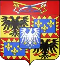 - À partir de 1646 : écartelé aux 1 et 4 de gueules à une quintefeuille d'hermines, aux 2 et 3 de gueules à 5 fusées d'or, 3 et 2, sur le tout d'azur, à une harpe d'or[8].