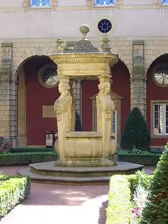 Le cloître de style classique possède des allures baroques italiennes un puits orné des Quatre Vertus cardinales : la Force, la Prudence, la Tempérance et la Justice. Un escalier monumental du XVIIe siècle se situe également dans l'aile nord-ouest du bâtiment le plus ancien.