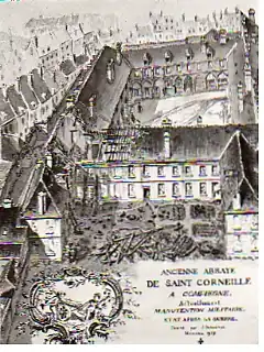 L’abbaye Saint-Corneille est située à Compiègne (876-1790), à 75 km au nord de Paris, dans le pays de Valois, et s’appelle tout d’abord Sainte-Marie ou Notre-Dame. Elle est renommée par la suite Saint-Corneille et est connue également sous le nom de Saint-Cyprien.