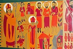 Les vitraux de la crypte sont les plus anciens. Les vitraux de la chapelle ont été mis en place après les destructions de la Seconde Guerre mondiale et sont l’œuvre d’Emmanuel Simminger et fils (1949), peintres-verriers à Montigny-lès-Metz.