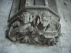 La pierre tombale située dans la chapelle Sainte-Agnès de l'abbatiale indique dans son épitaphe que maître Alexandre de Berneval, maître d'œuvre en maçonnerie, est l'auteur de cette église et qu'il est mort le . Selon toute vraisemblance, il est représenté sur la pierre tombale et sans doute est-ce celui des deux personnages, le plus âgé, qui tient en ses mains un compas et un support sur lequel est gravé un quart de rosace[10].